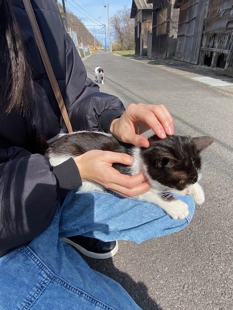 最後は1匹は島民のおばあさんが「こらこら困ってはるで~」って言いながら慣れた手つきでひょいっと抱っこしてくださいました笑(にゃんこ達、愛されてるな~)