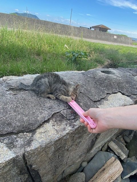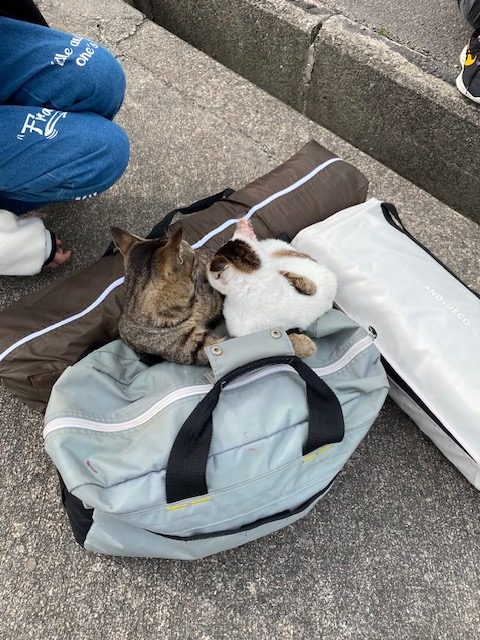最後は1匹は島民のおばあさんが「こらこら困ってはるで~」って言いながら慣れた手つきでひょいっと抱っこしてくださいました笑(にゃんこ達、愛されてるな~)